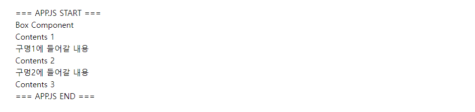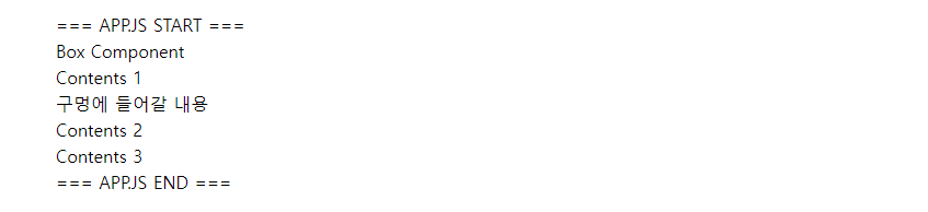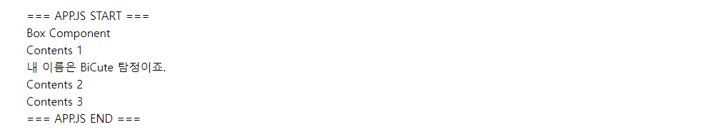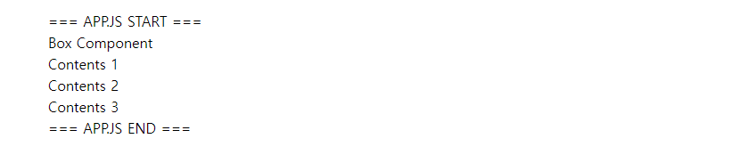 아래의 샘플은 App.js 내부에 Box 컴포넌트가 하나 삽입되어 있는 형태입니다.