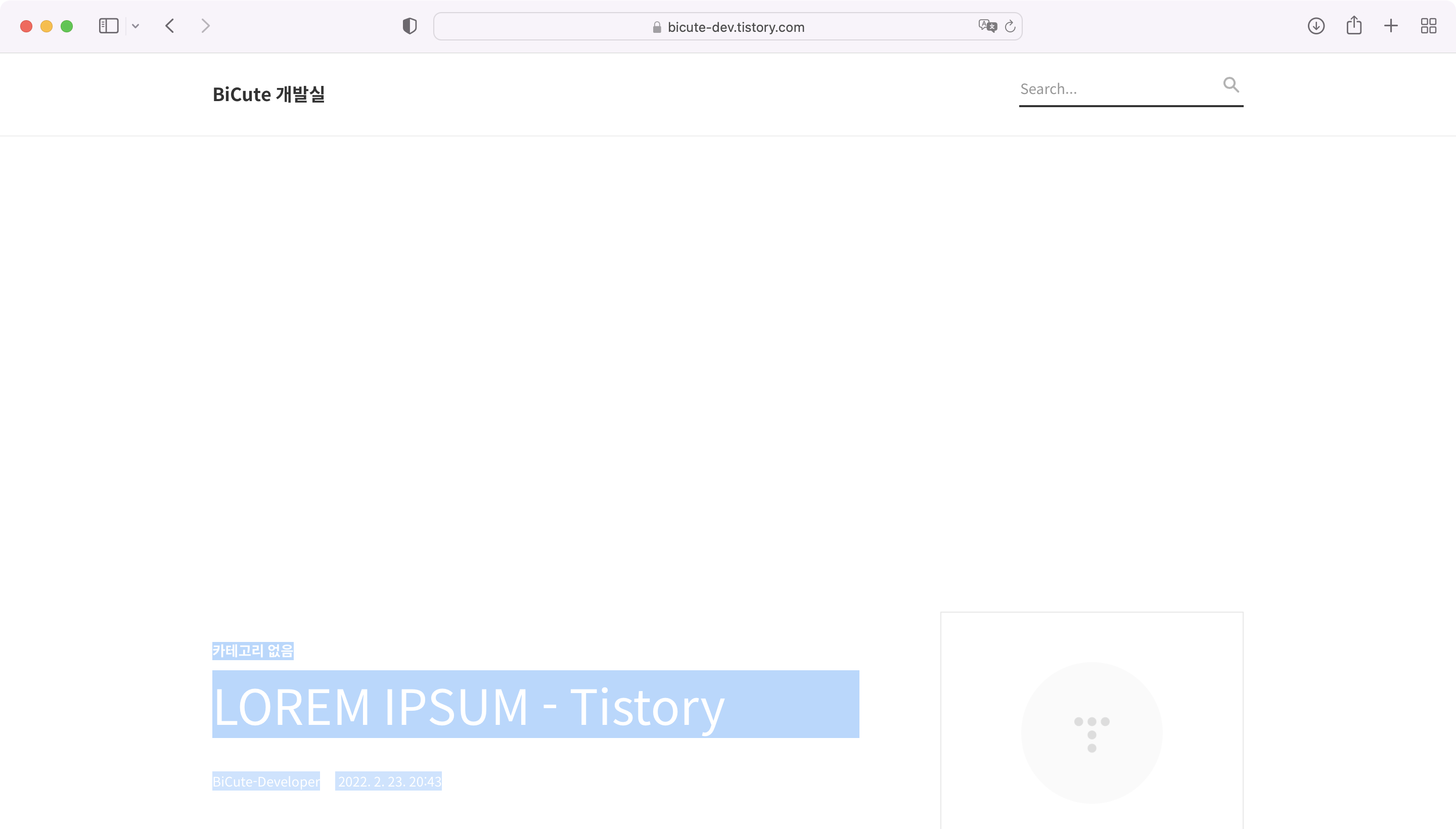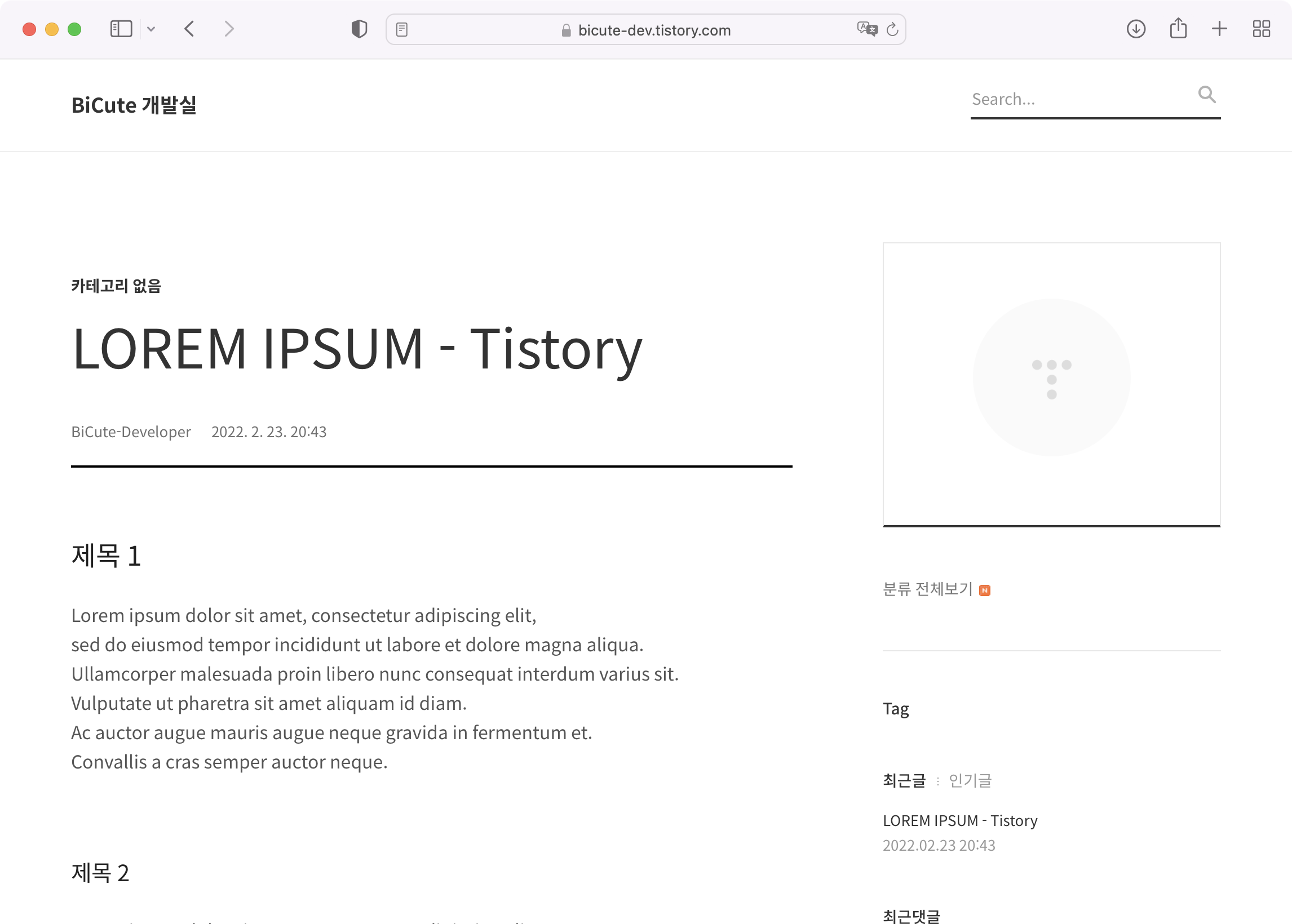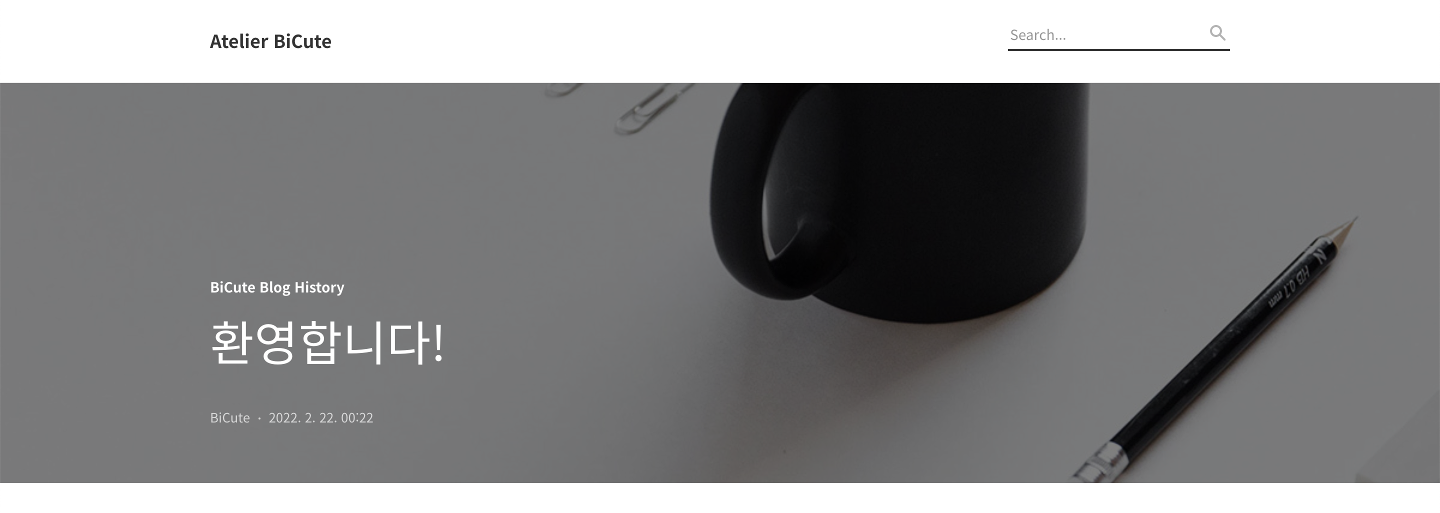 처음에 자동으로 생성되는 '환영합니다!'만 봤을 때는 나름 잘 어울리는 거 같아서 그러려니 하고 넘어갔었는데, 새로운 게시물을 작성하면서 대표 이미지가 글자가 있는 이미지로 적용이 되어버리니 제목 부분이 매우 혼란스러워졌습니다.