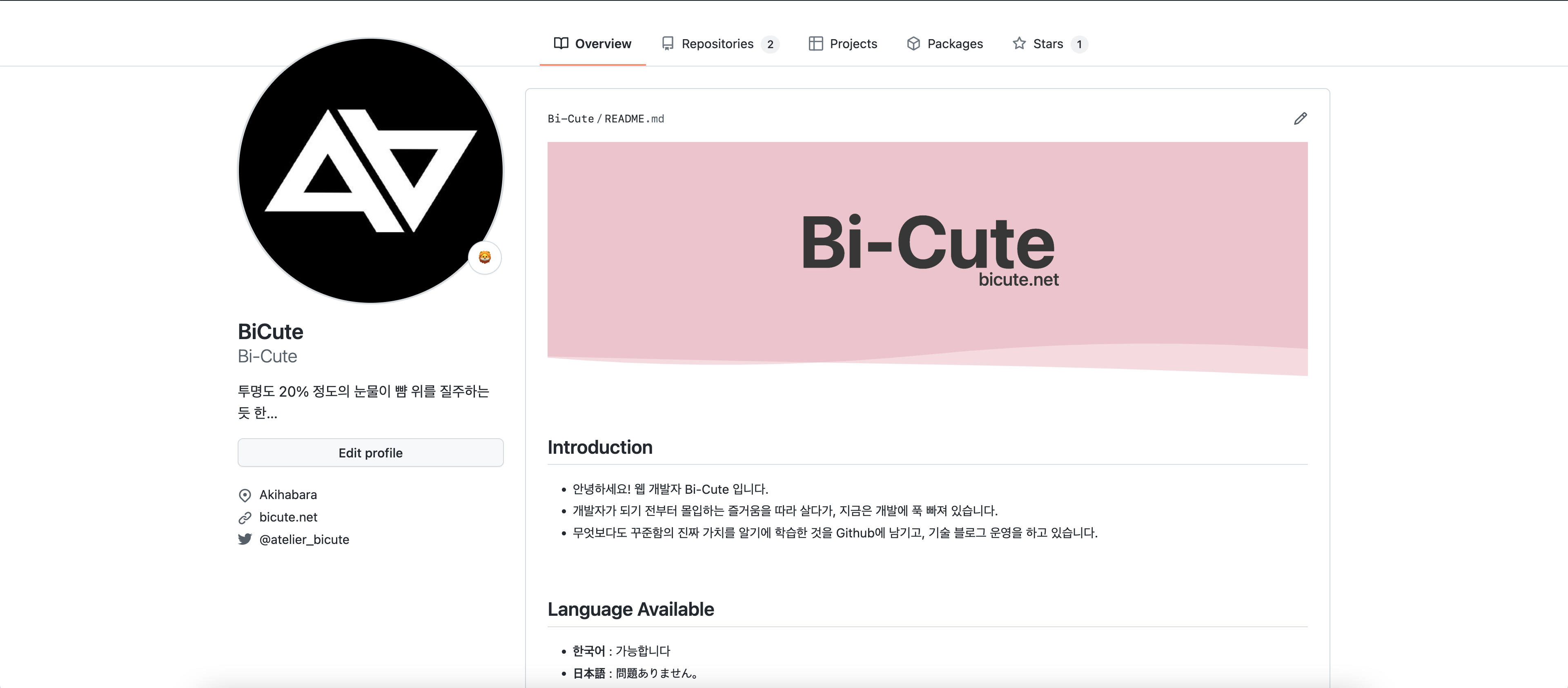 이 프로필 화면은 README 파일을 편집하여 만들 수 있습니다.