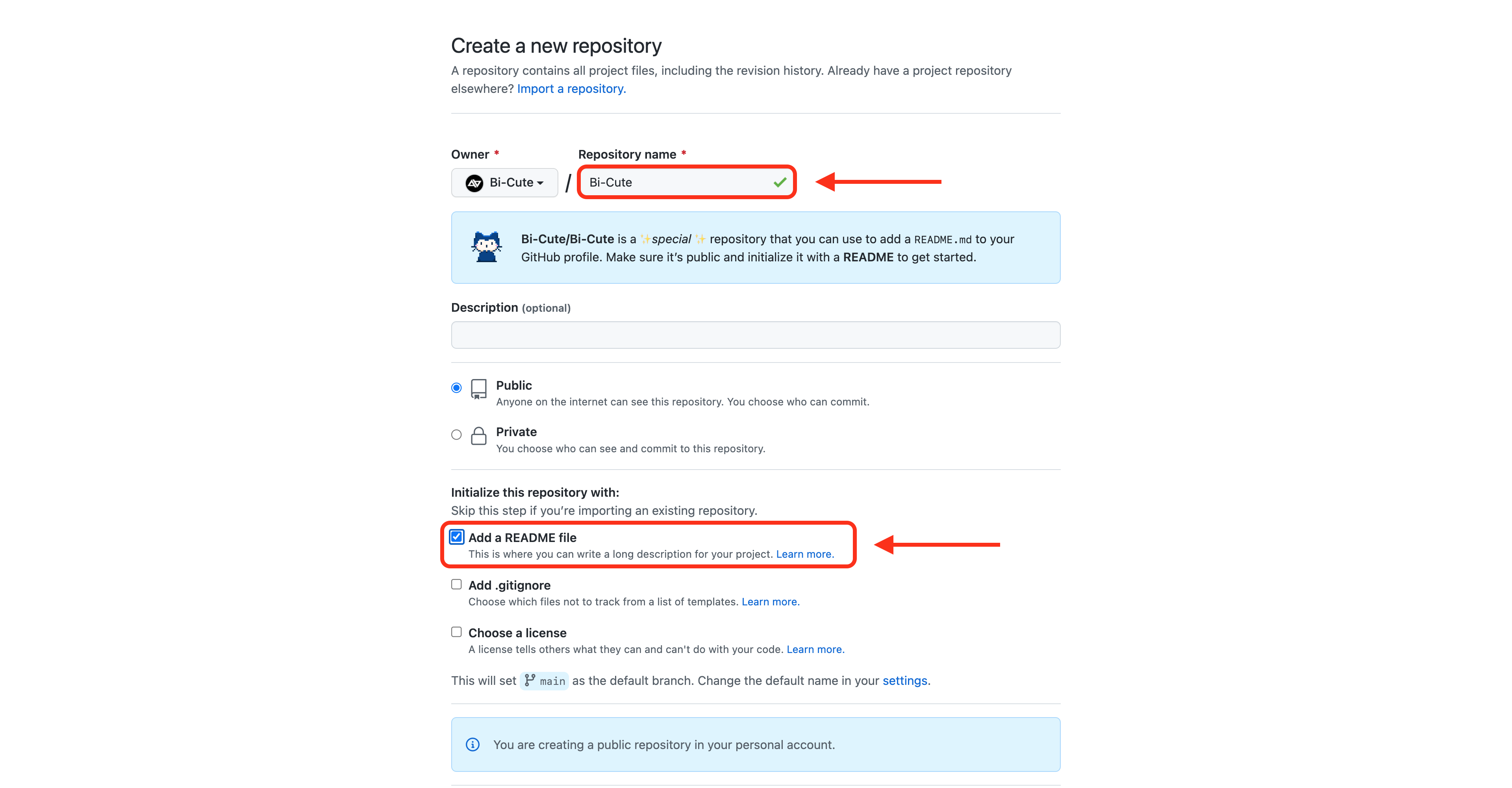 저장소를 만들 때 다음과 같은 순서로 생성해 주세요.