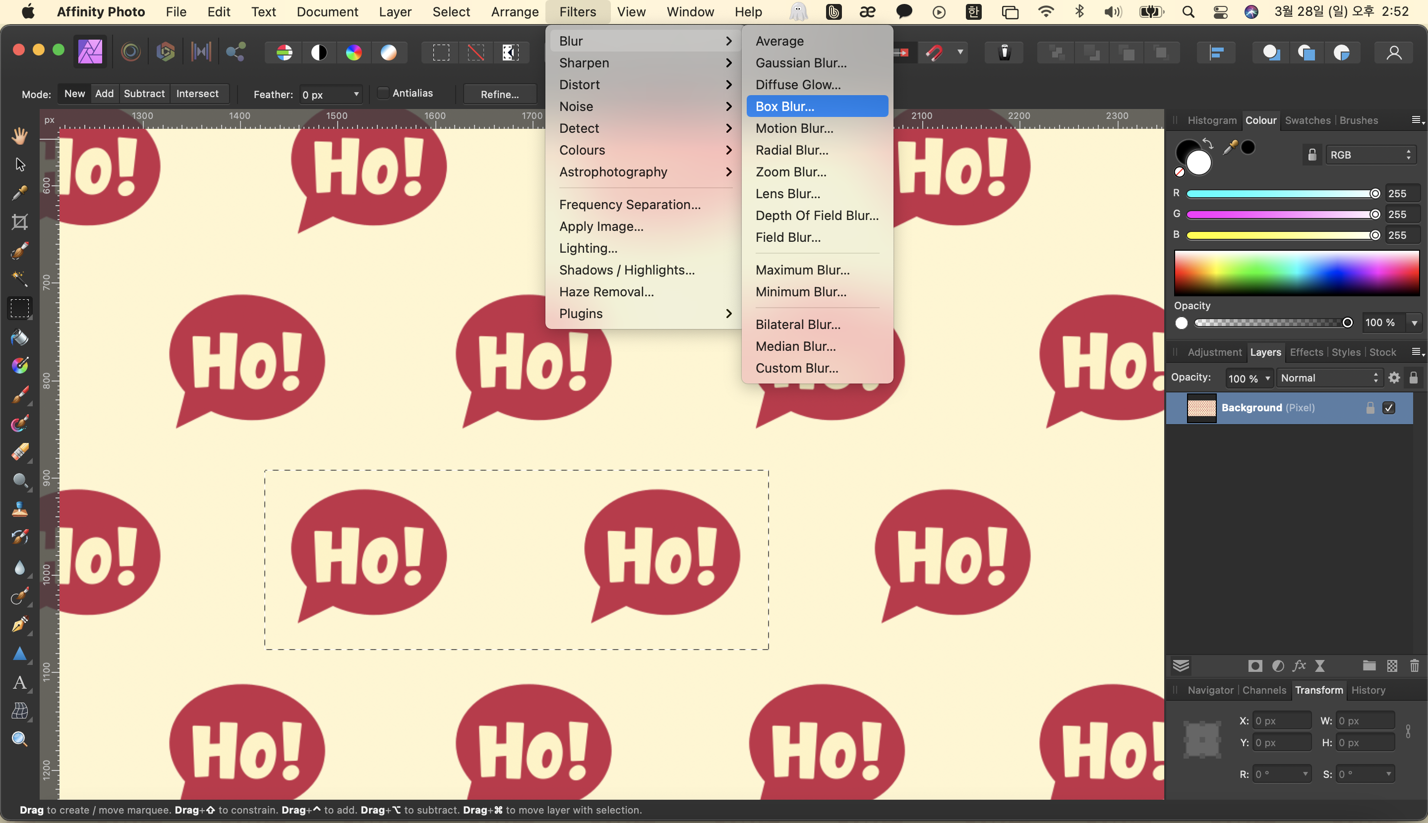 ② 'Filters > Blur > Box Blur...'를 선택해 줍니다.