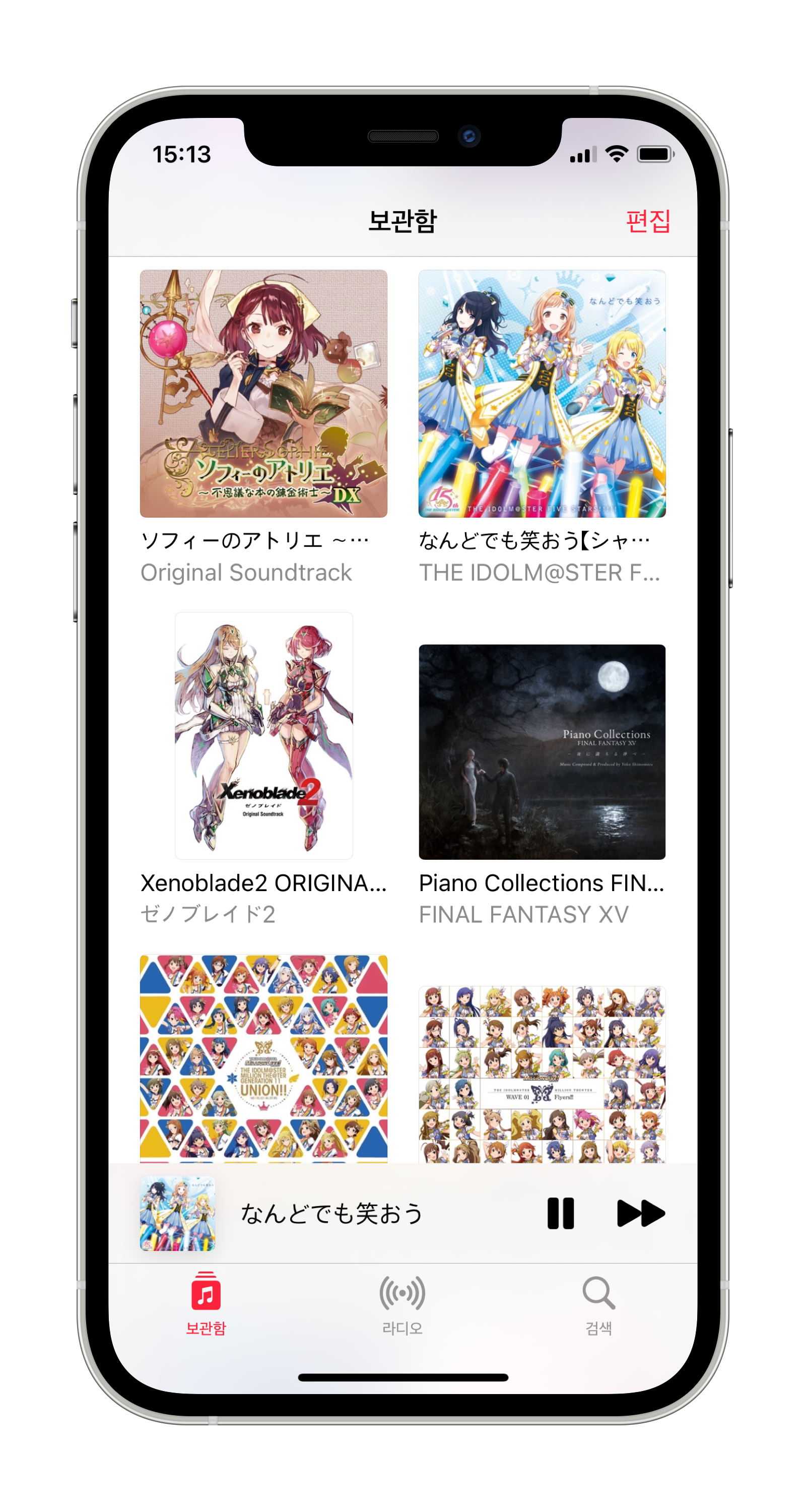 동일한 내용이 등록이 되었으며, 음악 앱에선 오른쪽 위의 편집을 눌러 앨범, 장르, 등 다양한 타입으로 리스트를 볼 수 있습니다.